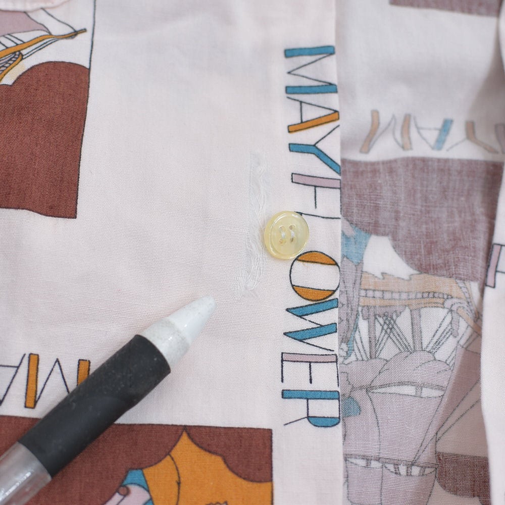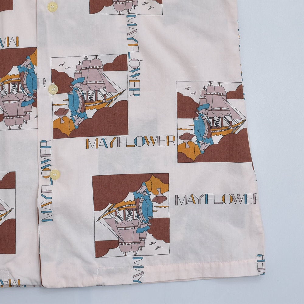 北アメリカへ渡った帆船、メイフラワー号が描かれたレトロな趣を感じる総柄デザイン
