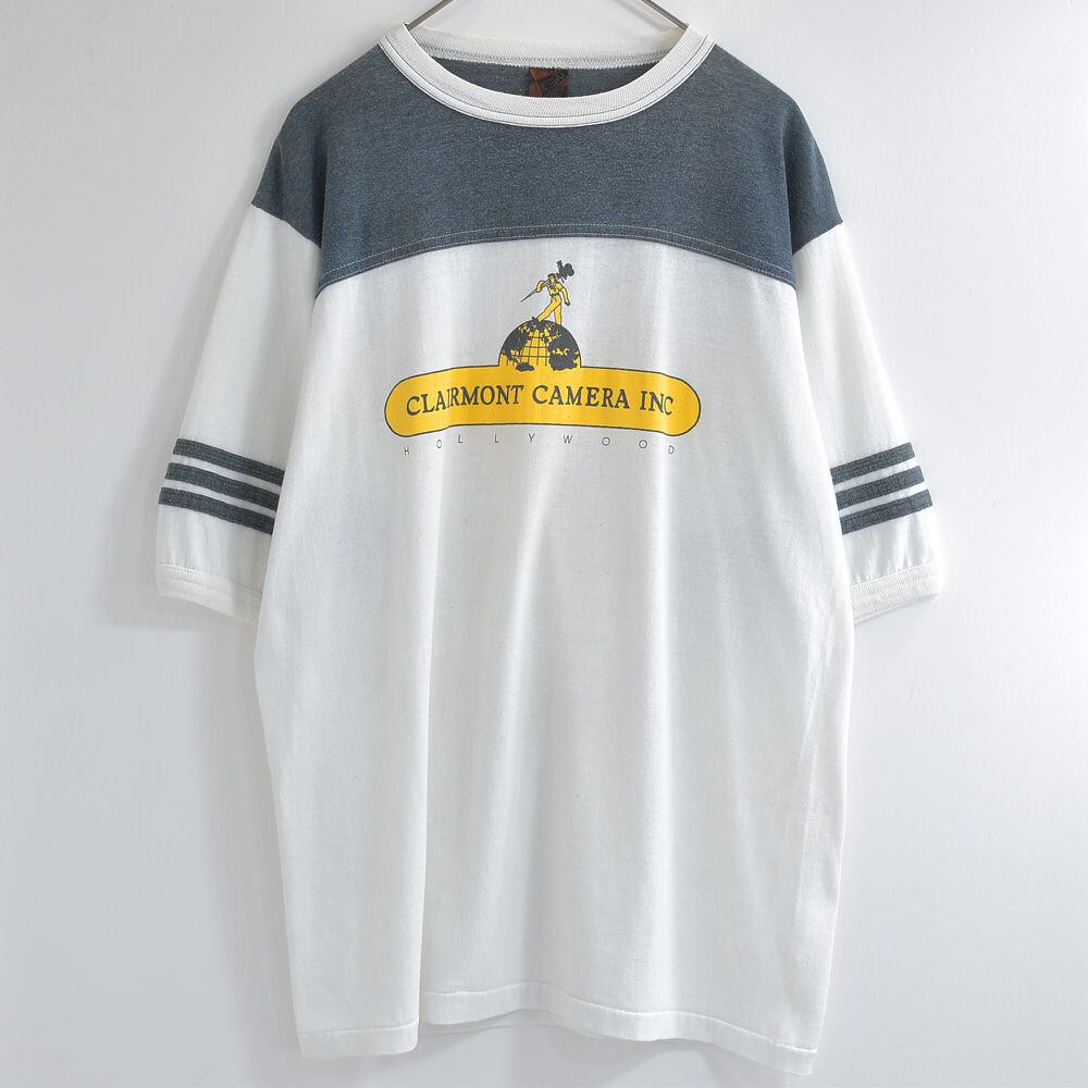 70~80s CLAIRMONT CAMERA INC ロゴプリント フットボールTシャツ ヴィンテージ カメラ 企業 アドバタイジング ビンテージ USA アメリカ古着 メンズL~相当