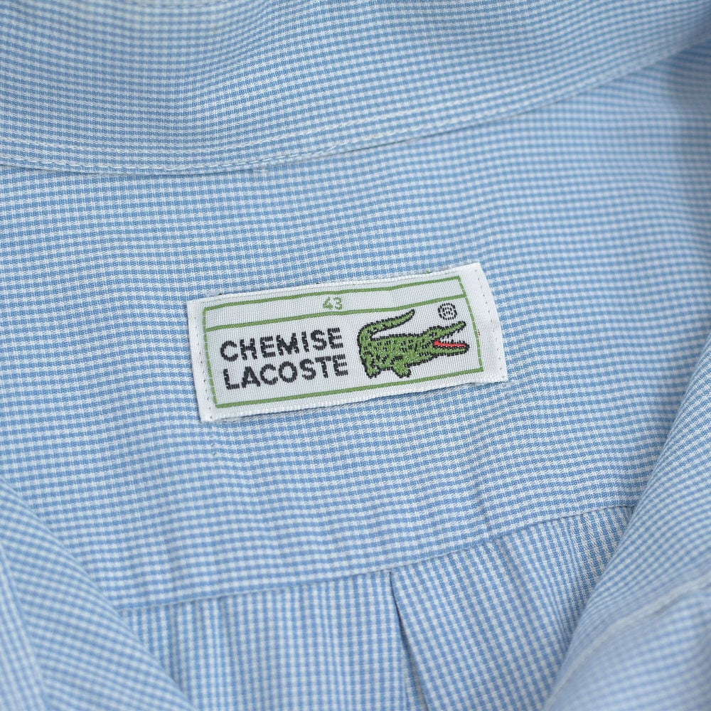80s フランス製 CHEMISE LACOSTE ラコステ ミニギンガムチェック シャツ ヴィンテージ 半袖 総柄 ビンテージ ヨーロッパ古着 メンズXL相当