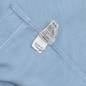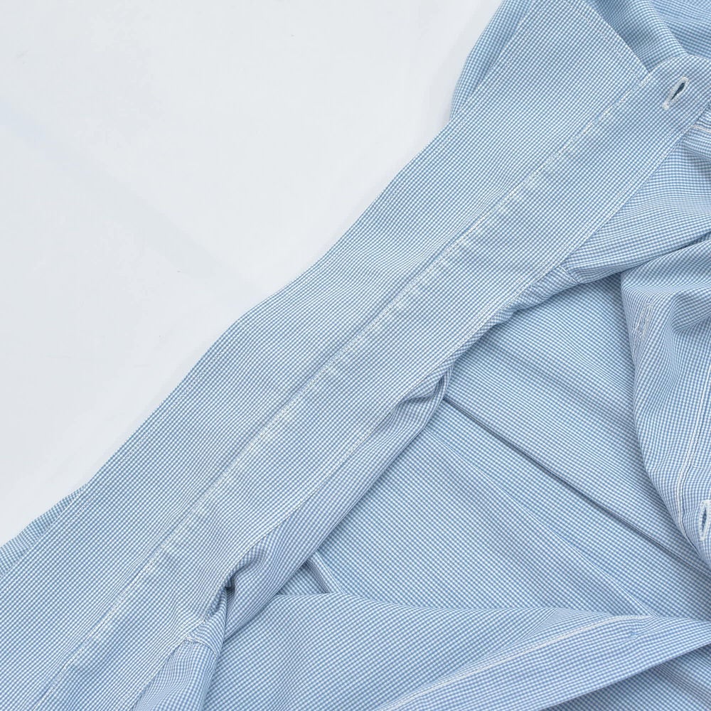 ライトトーンのブルーをベースにした細かなギンガムチェックから爽やかな印象を受ける佇まい