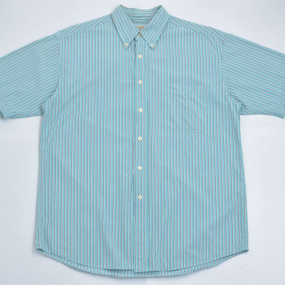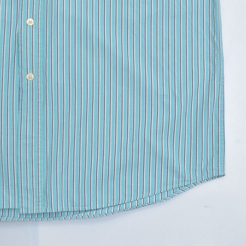 90s St John's Bay セント・ジョンズベイ コットンポプリン ストライプ ボタンダウンシャツ ヴィンテージ 半袖 ビンテージ USA アメリカ古着 メンズXL相当