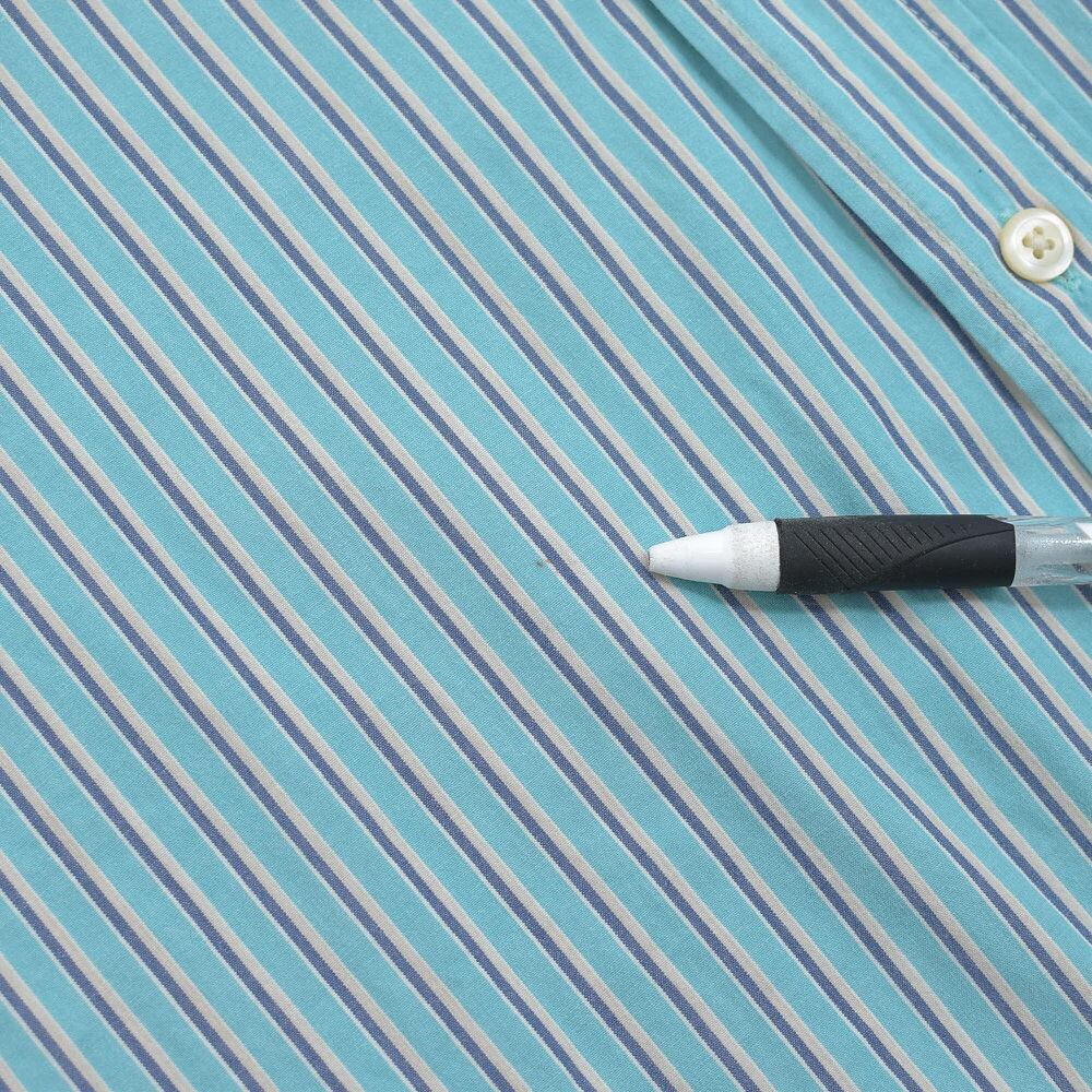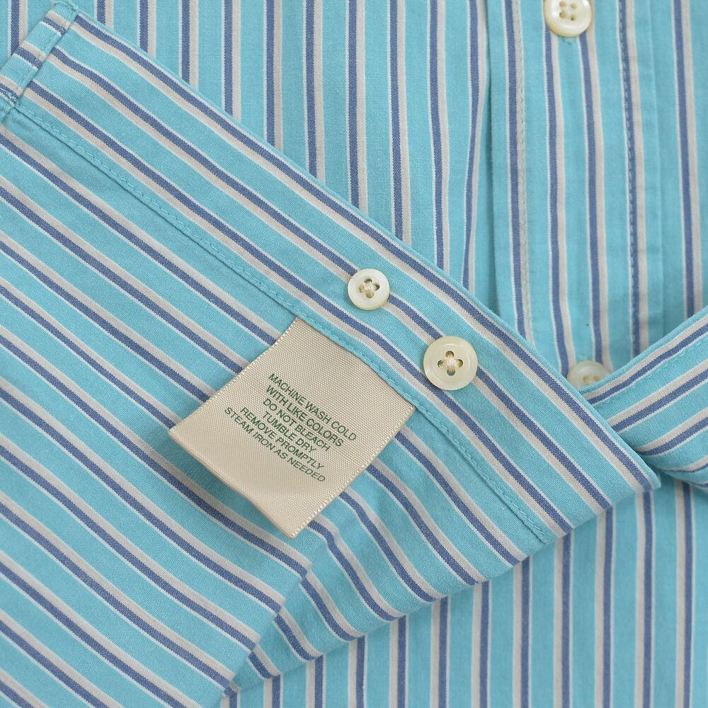 柔らかく肌触りの良いマットな質感のコットンポプリンを使い、ライトなターコイズブルーのをベースにダブルストライプをあしらった一枚