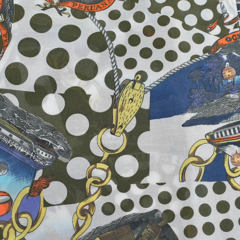 大きさの違う水玉模様や、ペルー共和国の国旗を掲げた貿易船にイカリやロープ、鎖などが散りばめられたベルアートのオープンカラーシャツ