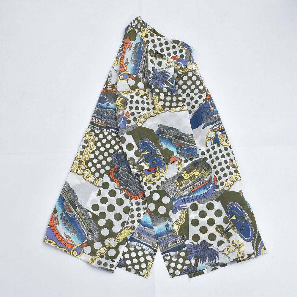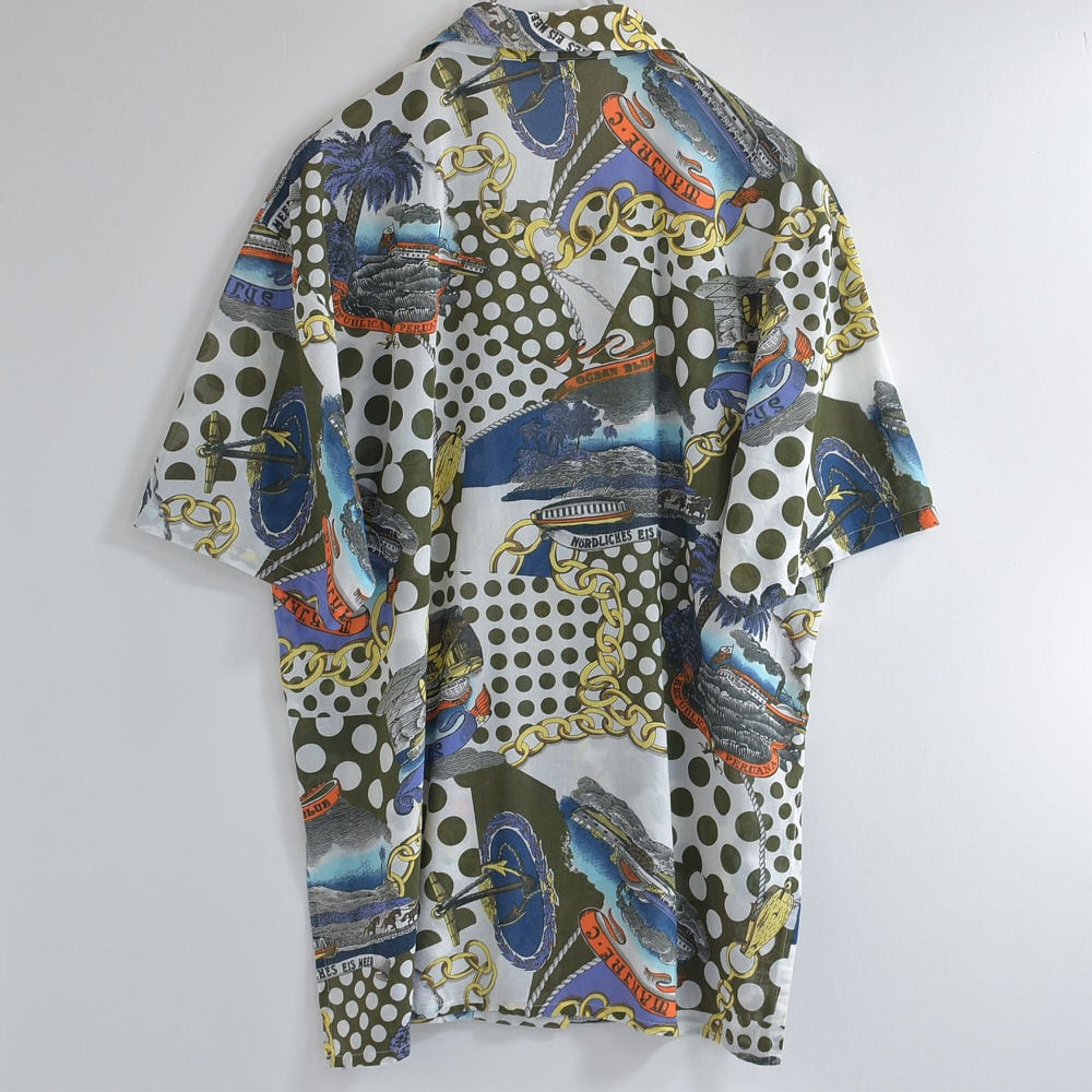 80〜90s BEL-ART ドッド&風景柄 デザイン 総柄 オープンカラーシャツ ジャパンヴィンテージ 半袖 マリン柄 開襟 ビンテージ 古着 レディースL〜XL相当