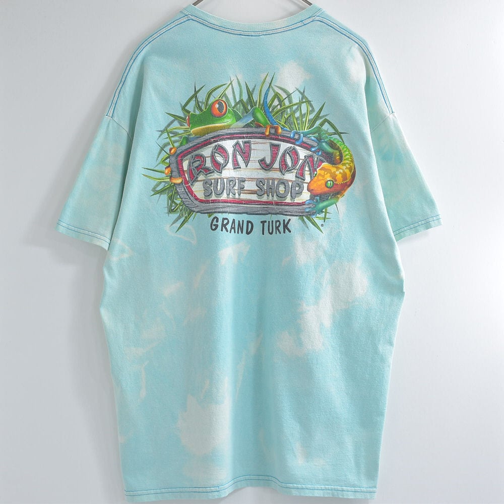 00s〜 RON JON ロン・ジョン ブリーチ加工 サーフ ロゴ&トカゲ プリント Tシャツ 半袖 爬虫類 デザイン ヴィンテージ ビンテージ USA アメリカ古着 メンズXLサイズ
