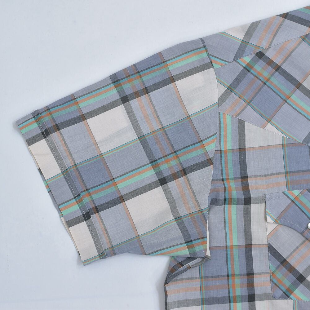 90s〜 EXPRESS RIDER タータンチェック 総柄 ウエスタンシャツ ヴィンテージ 半袖 格子柄 グレー カウボーイ ビンテージ USA アメリカ古着 メンズLサイズ