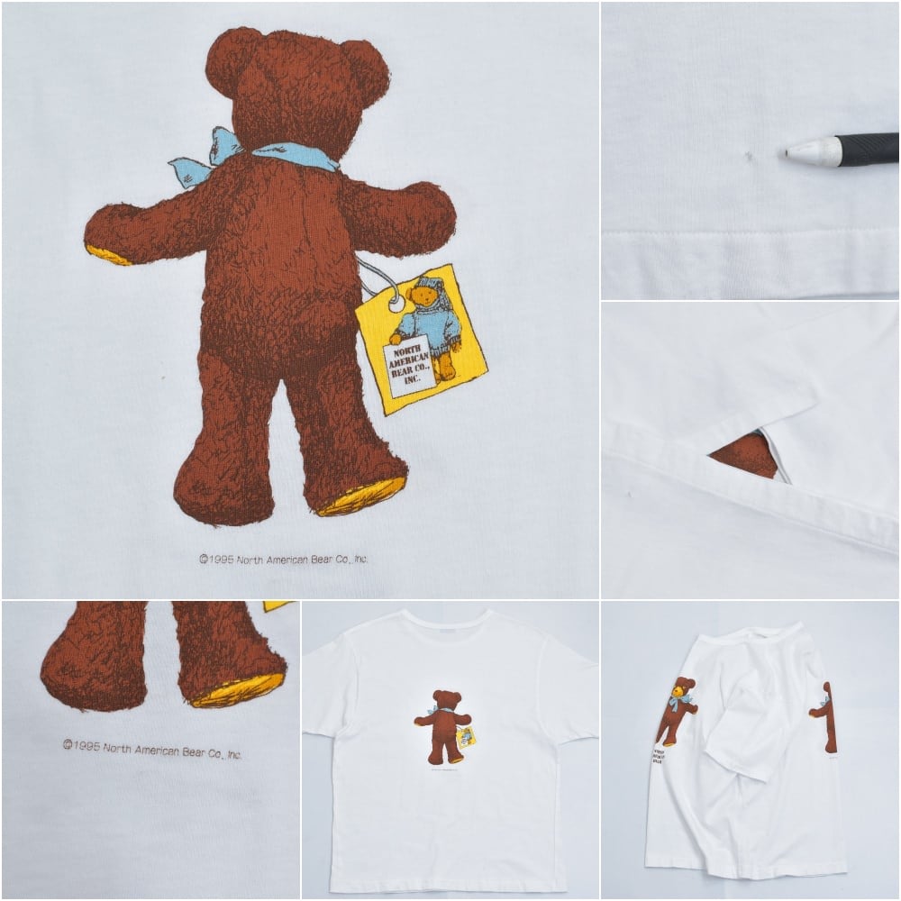 90s NORTH AMERICAN BEAR ノース・アメリカン・ベア プリント Tシャツ アニマル くまさん 半袖 テディベア ヴィンテージ 熊 ビンテージ 古着 メンズM相当