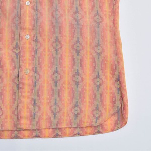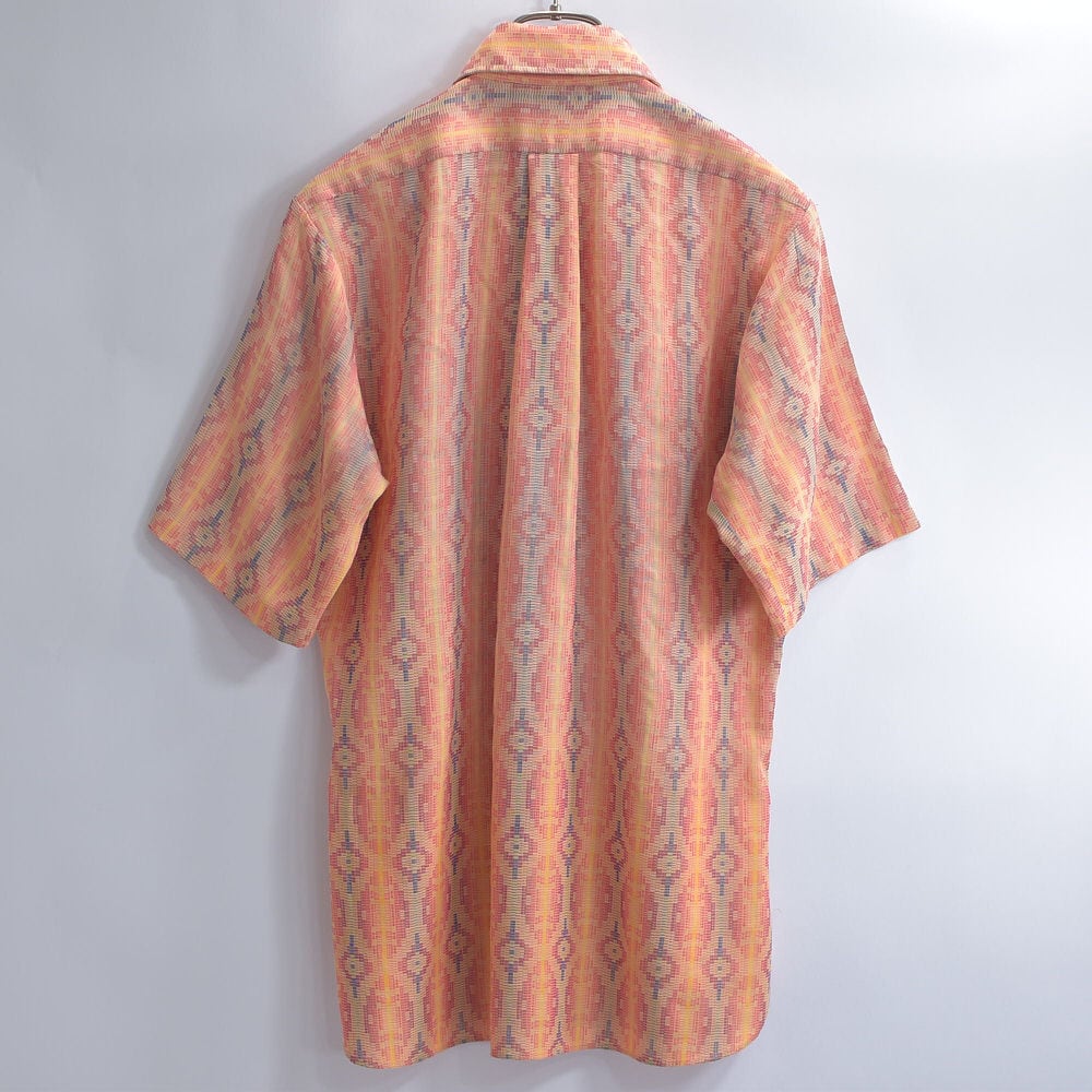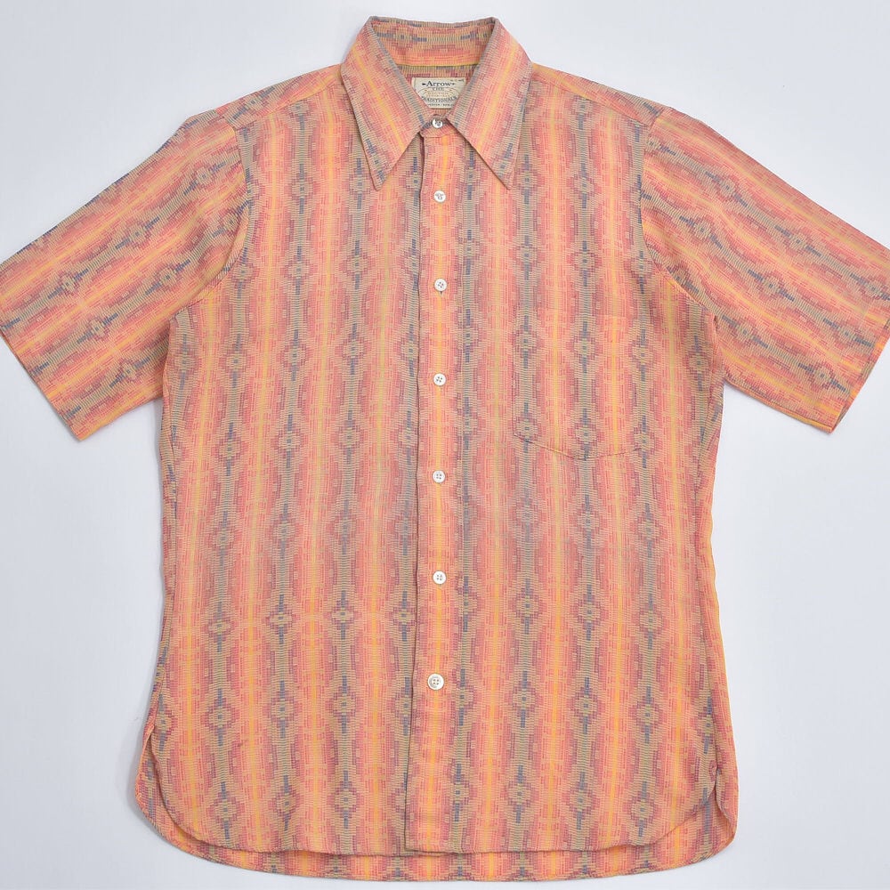 60s Arrown アロー ネイティヴ調 ジオメトリックパターン ジャガード ストライプ 総柄 シャツ ヴィンテージ 半袖 幾何学模様 ビンテージ USA アメリカ古着 メンズSサイズ