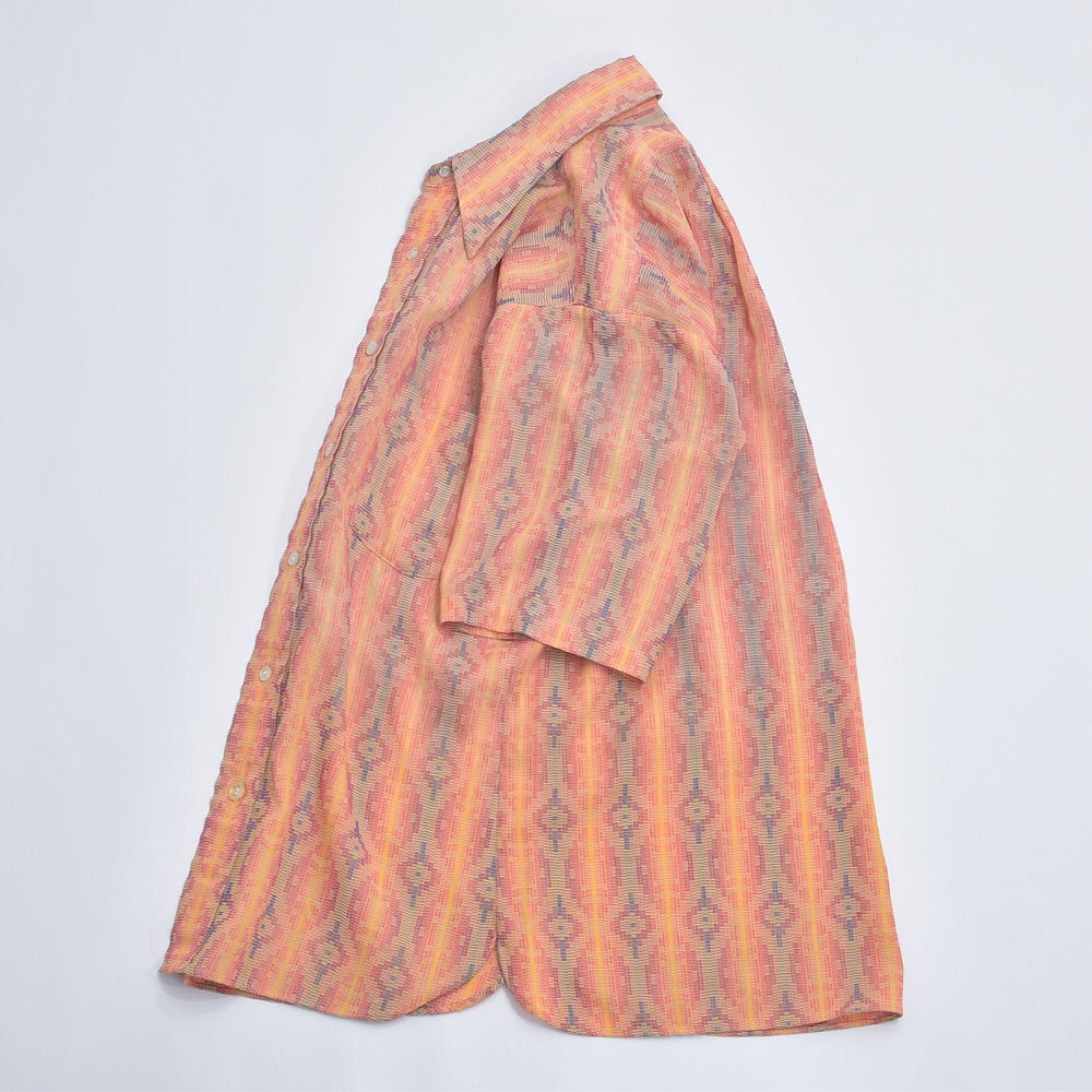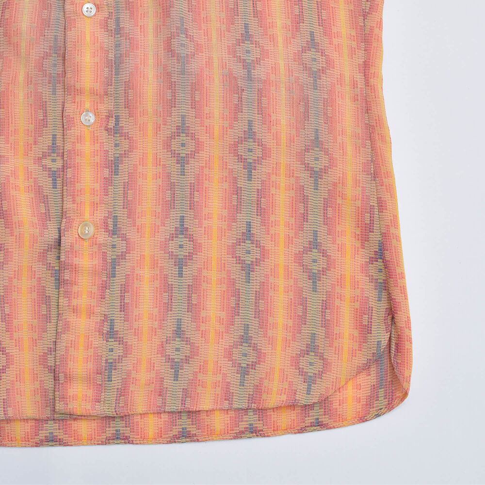 サラリとした肌触りの良い薄手のポリコットンを使用し、ネイティブ調の幾何学模様がストライプ状にジャガード織にてデザインされた雰囲気良きな一枚