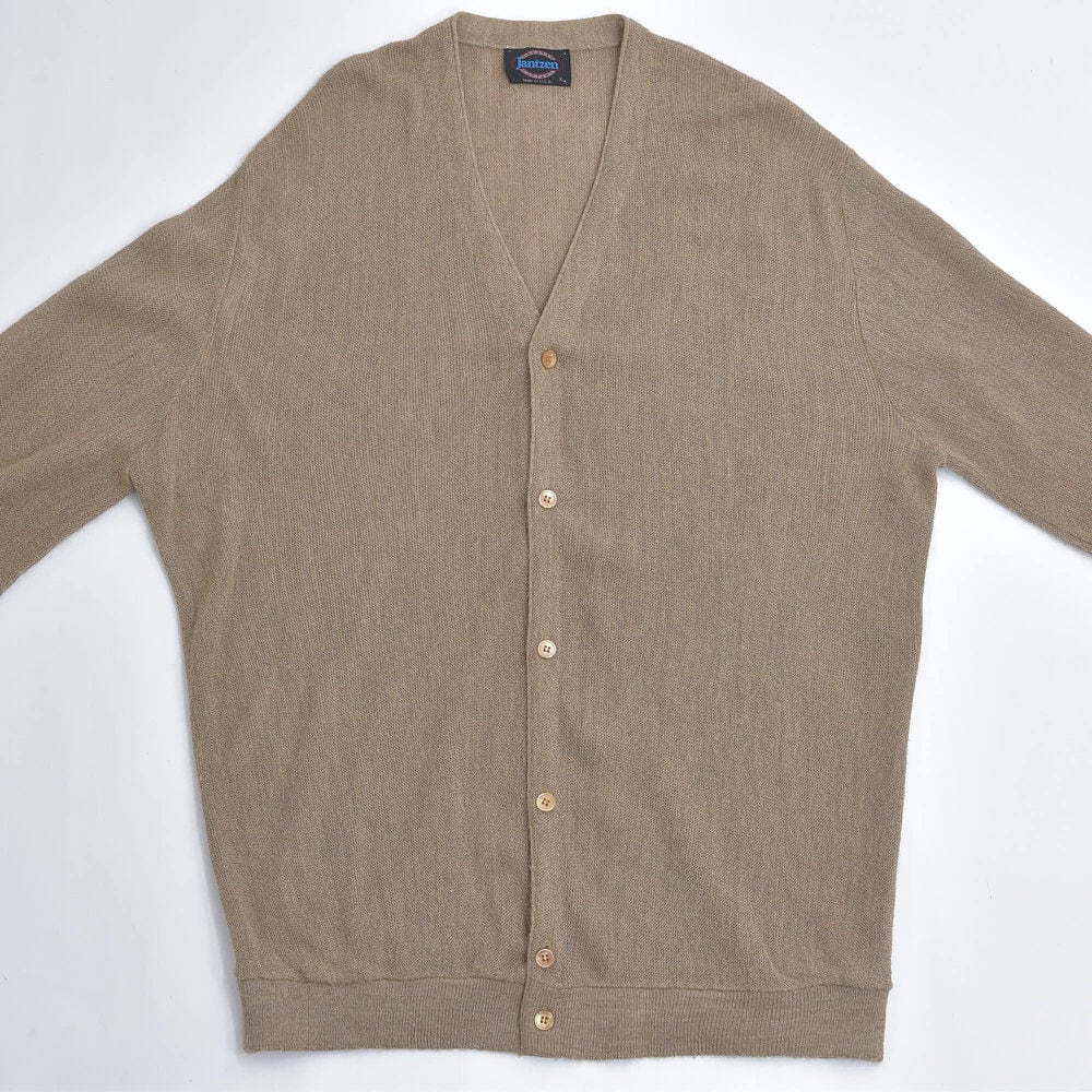 80s アメリカ製 Jantzen ジャンセン アクリルニット カーディガン セーター ヴィンテージ アウター カーデ ベージュ USA古着 メンズXLサイズ