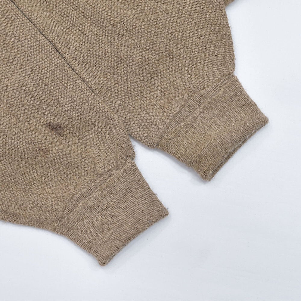 ・使用感や毛羽立ち、画像のように右手首周りにシミ汚れ、経年によるニットの伸びや、型崩れなどはありますが、その他目立つ汚れ、ダメージは見当たらず、日常的に古着を着用されている方であれば着用して頂けると思います