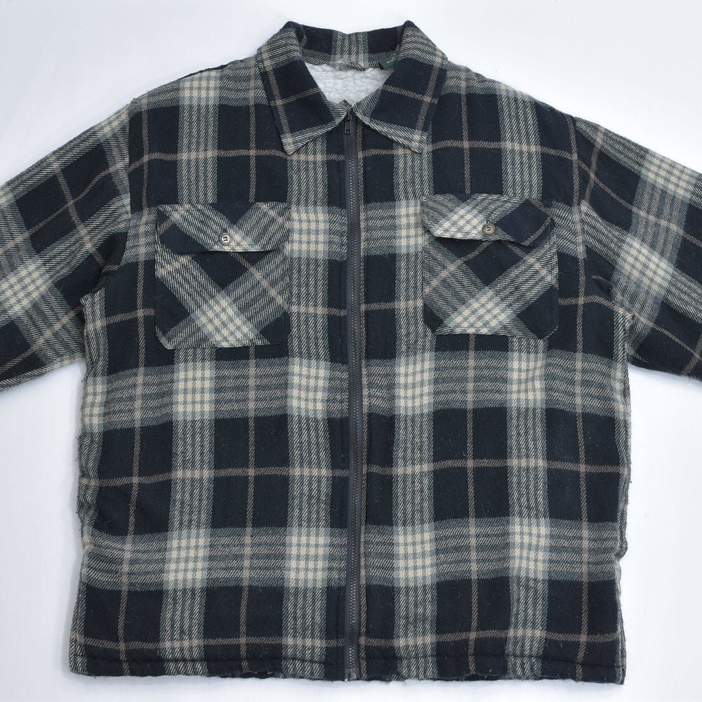 90s CEDAR HILL タータンチェック 総柄 裏ボア シャツジャケット ヴィンテージ アウター アクリルウール ブラック ビンテージ USA アメリカ古着 古着 メンズXL相当