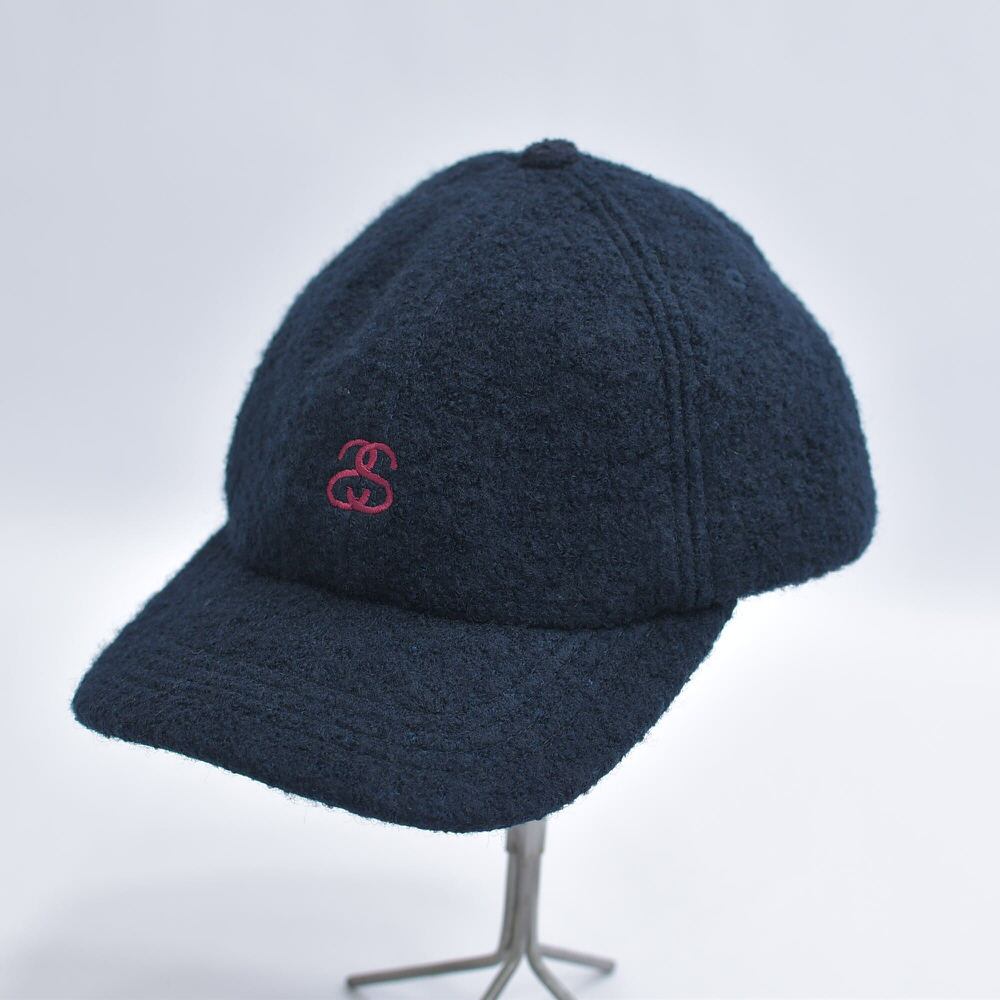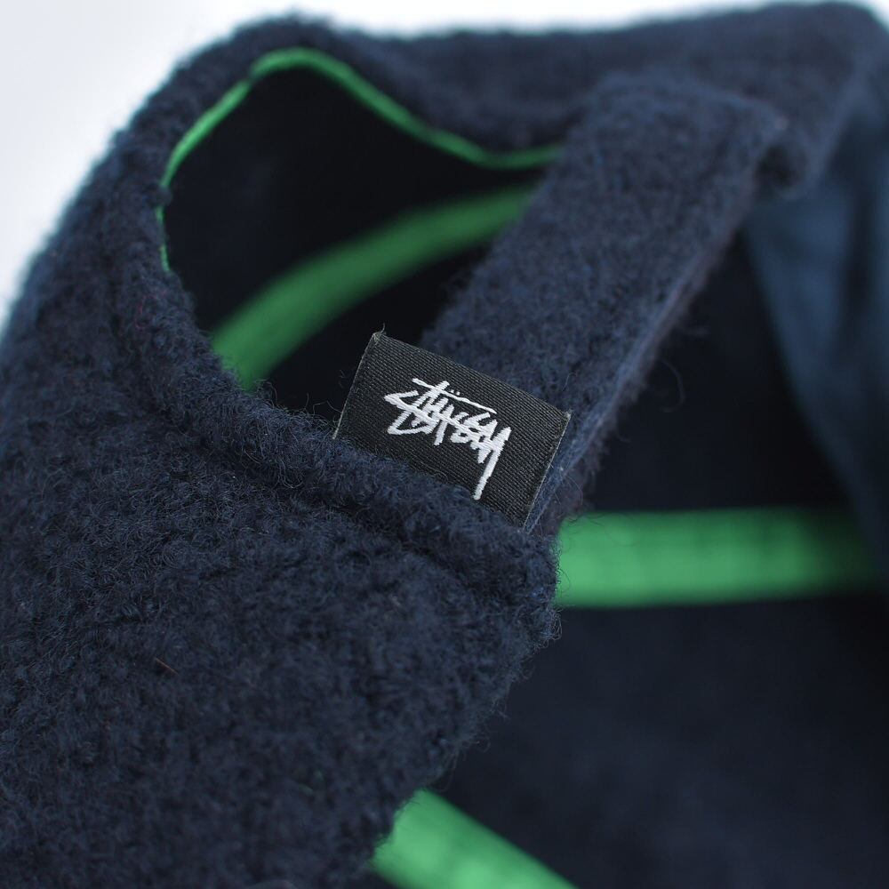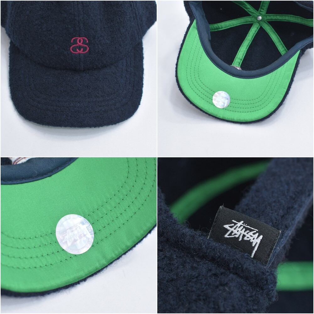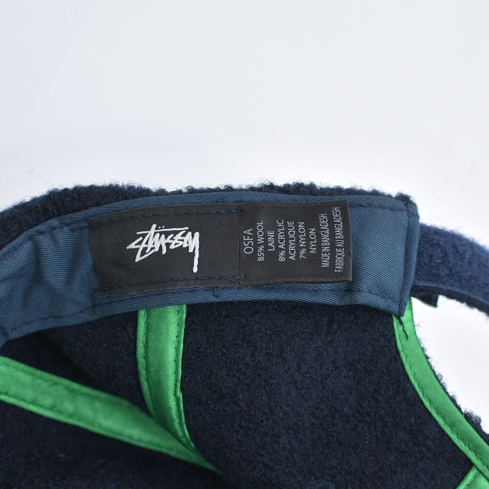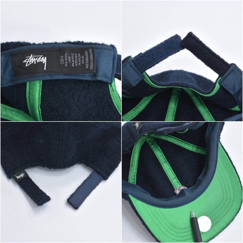 00s~ Stussy ウール 6パネルキャップ ロゴ刺繍 ネイビー ヴィンテージ 帽子 マジックテープ ビンテージ 古着