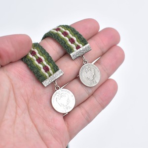 コインで作った装飾と、カラフなテープが目を引くチロリアンネックレスです