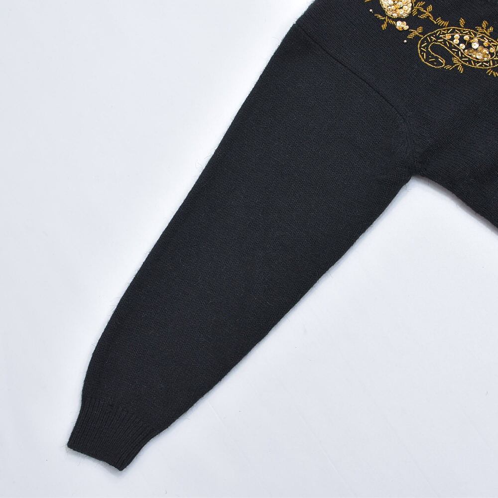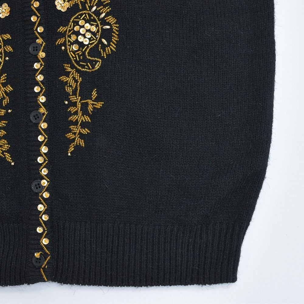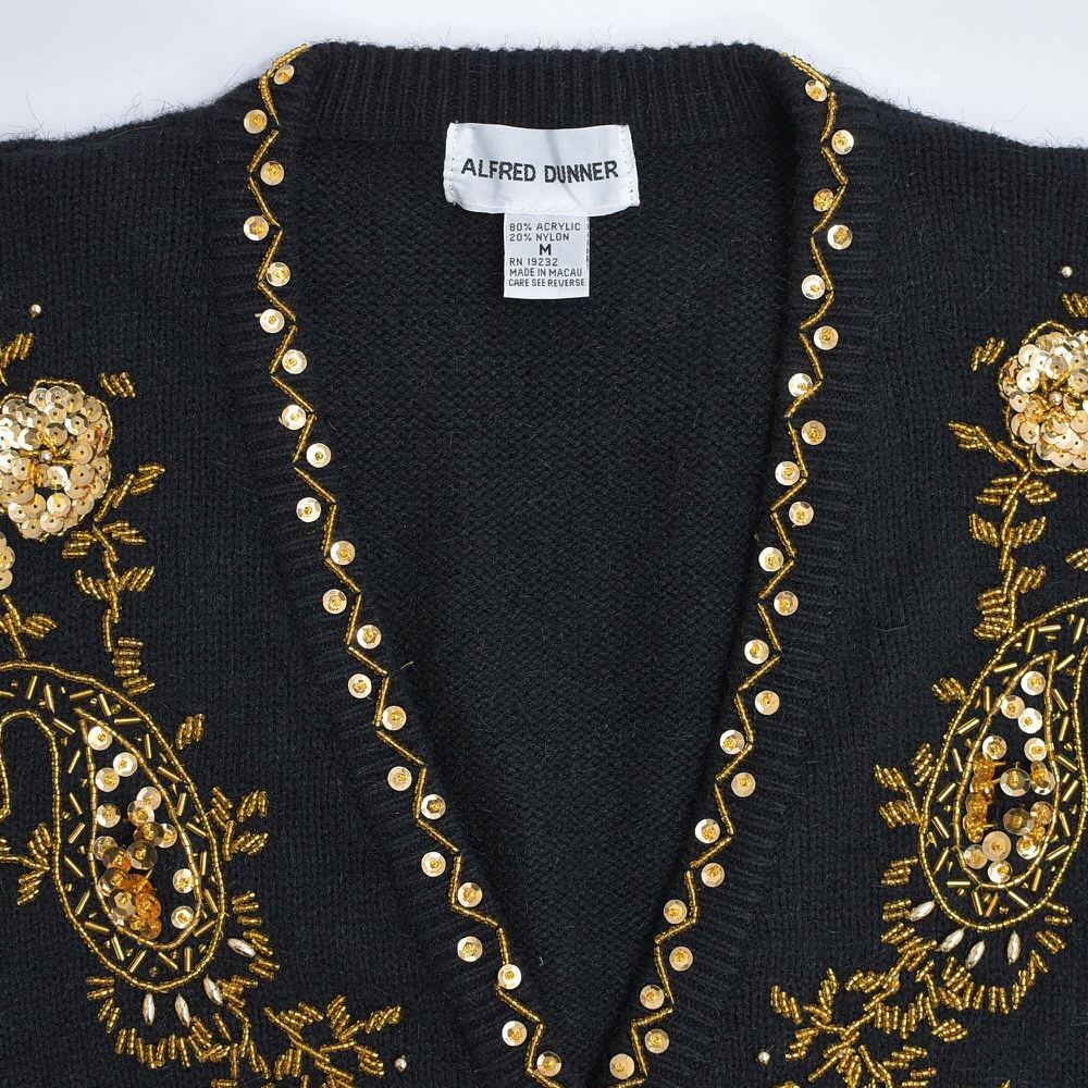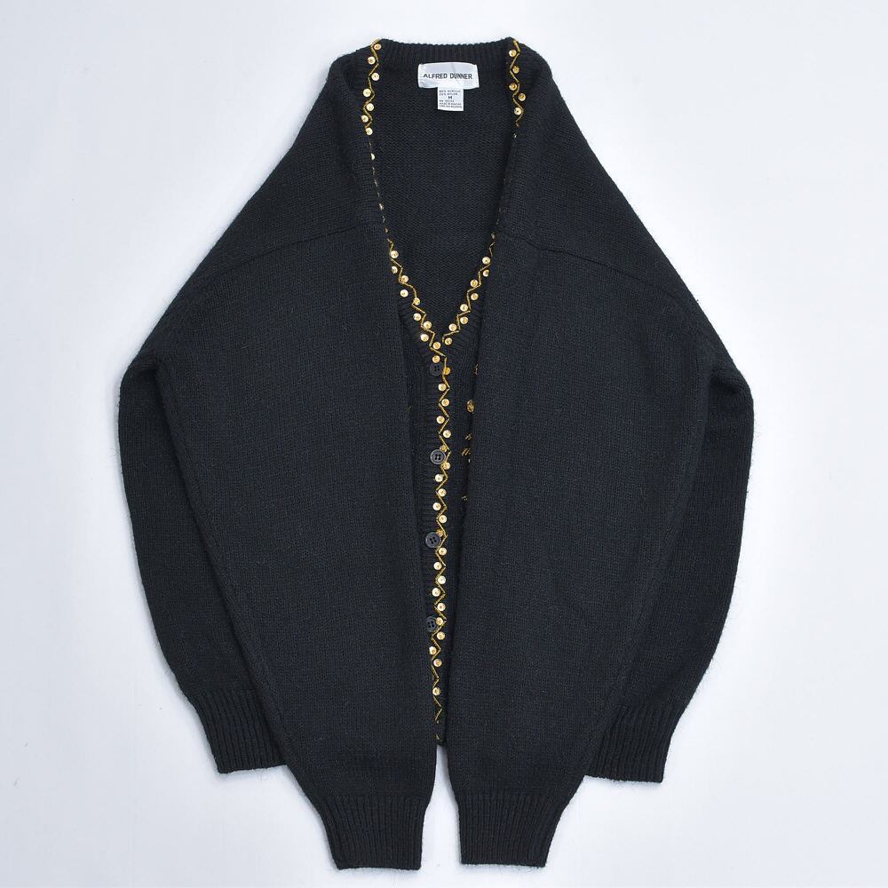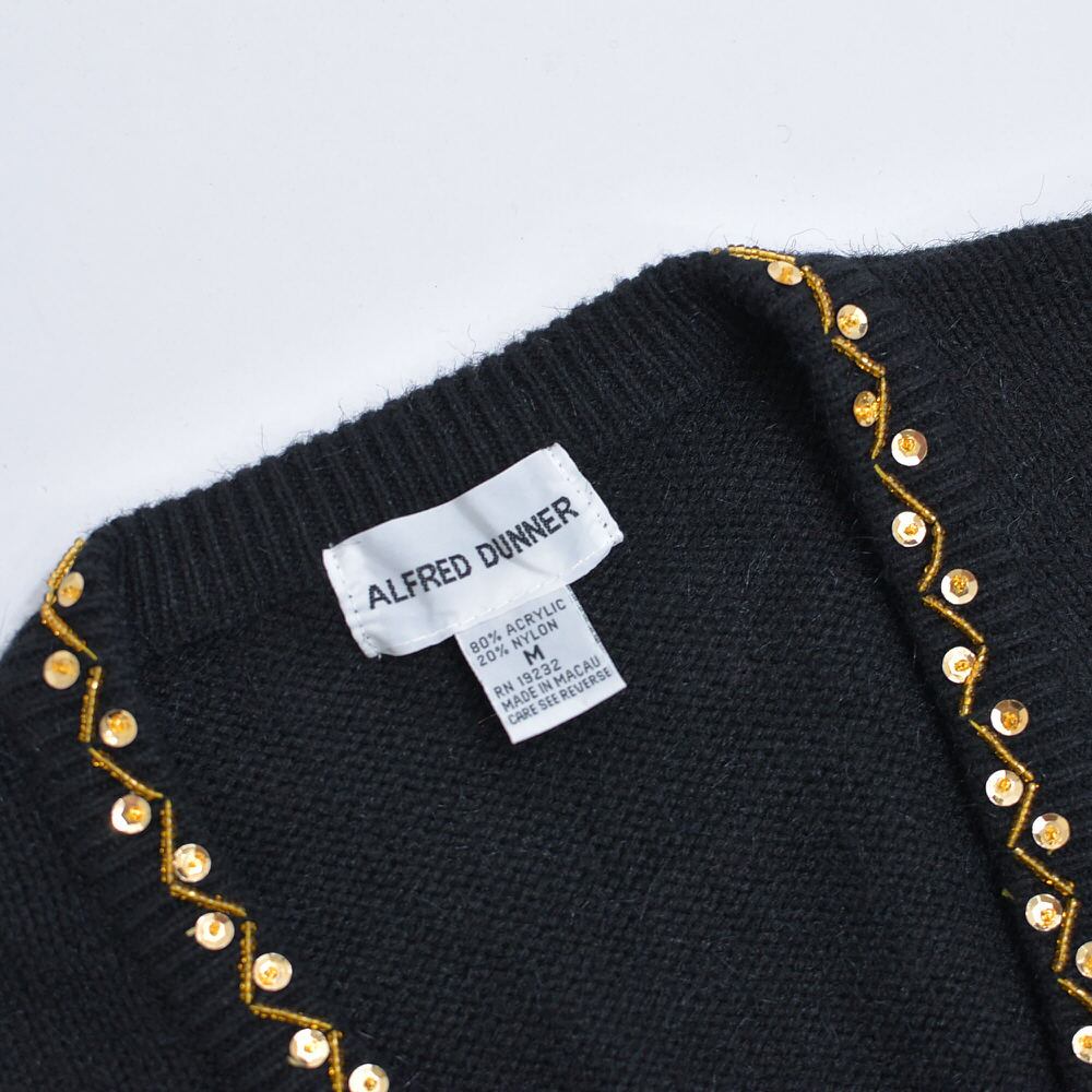80~90s ALFRED DUNNER アルフレッド・ダナーデコレーション刺繍 デザイン ニットカーディガン ヴィンテージ ブラック ビンテージ USA アメリカ古着 レディースL相当