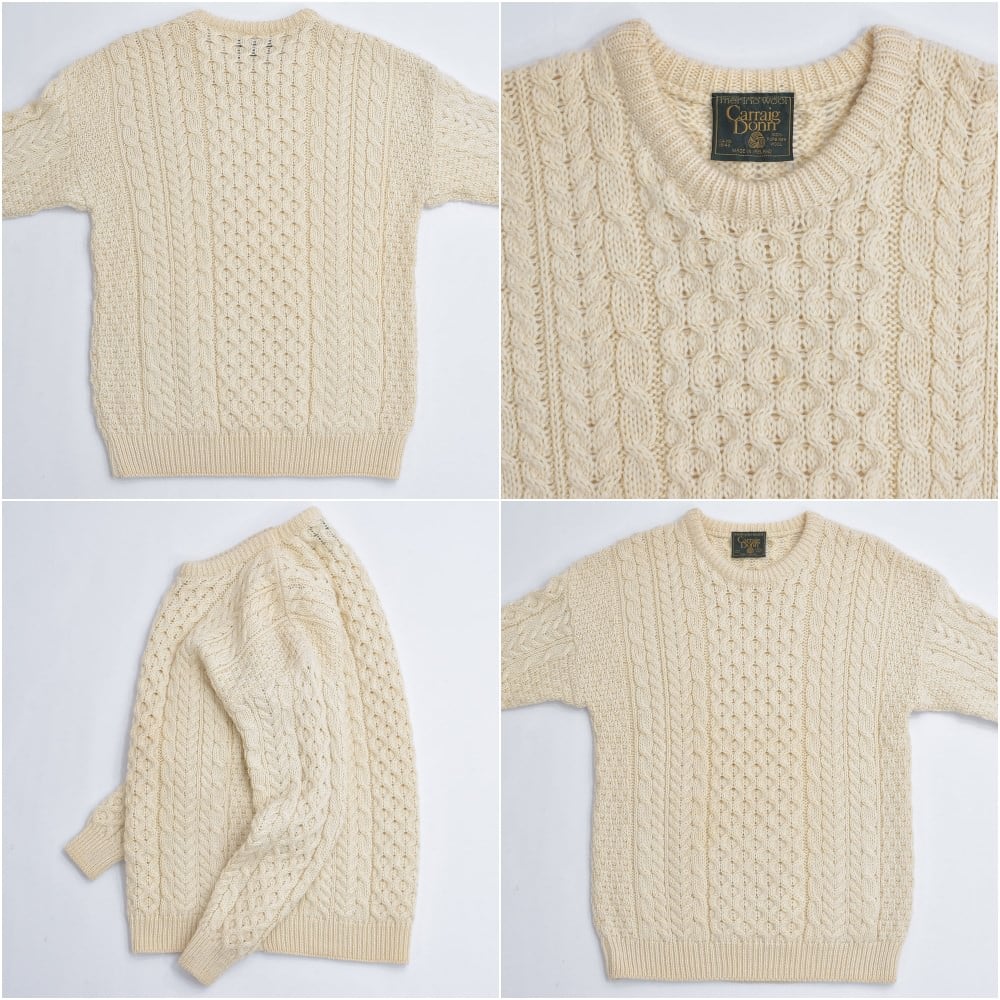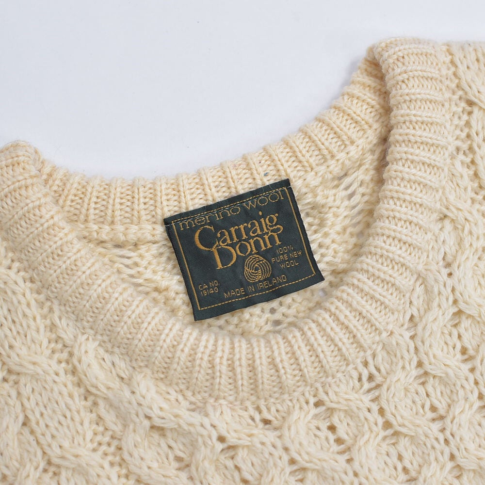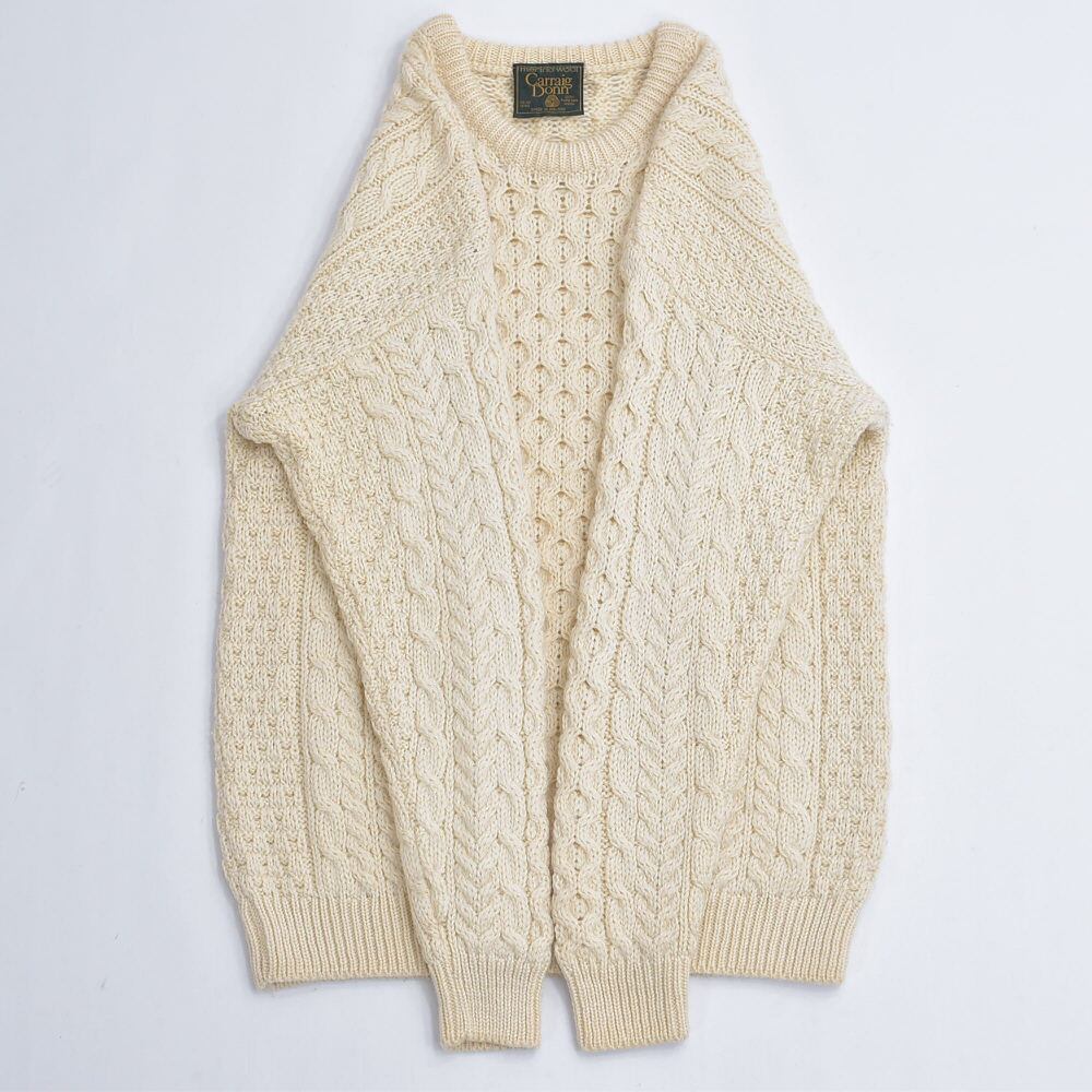 80〜90s アイルランド製 Carraig Donn フィッシャーマン プルオーバーニット セーター ヴィンテージ アイボリー 北欧ビンテージ ヨーロッパ古着 メンズL相当