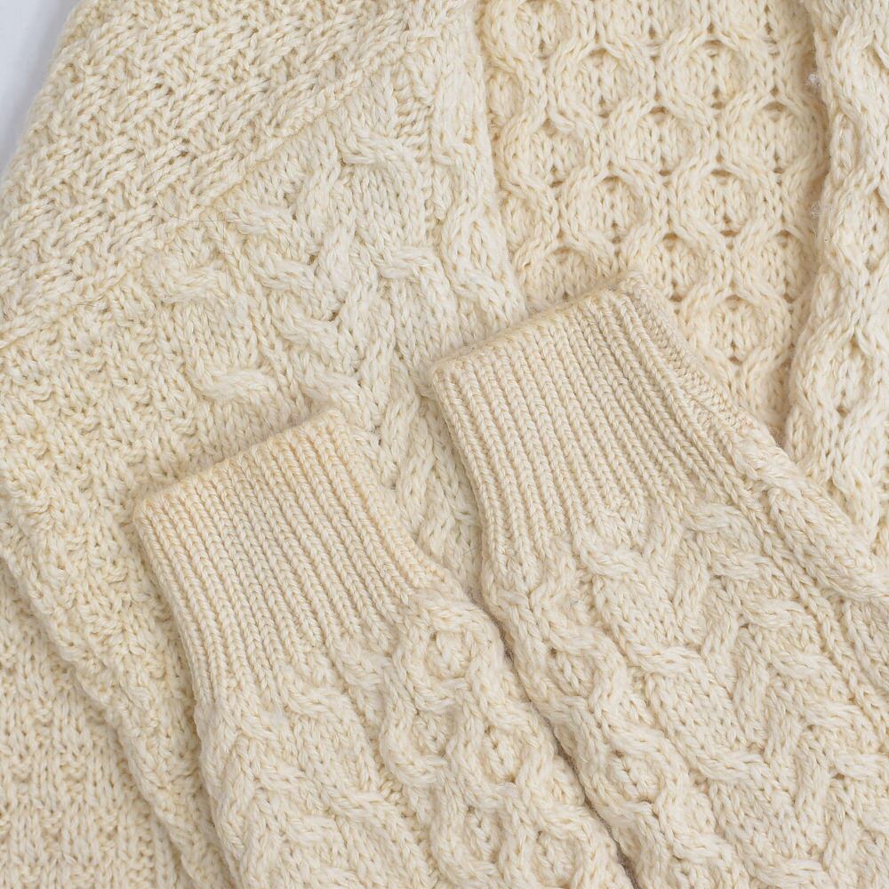 アイボリーの優しいの色味がほっこりする、冬になると無性に着たくなるアランニットの愛称で親しまれている北欧を代表するセーター、フィッシャーマンニット