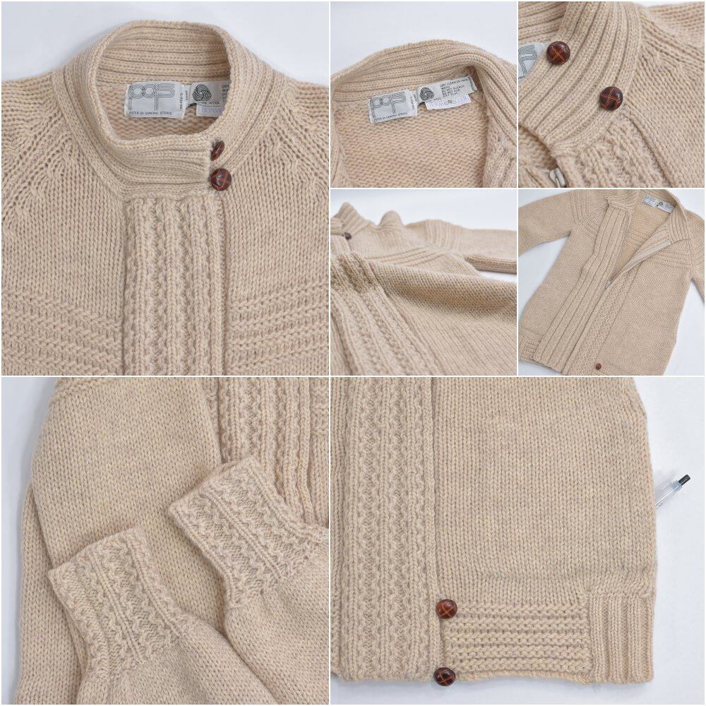 70〜80s PETER G's GENERAL STORES デザイン ジップアップ カーディガン ヴィンテージ ニット セーター ベージュ ビンテージ USA アメリカ古着 レディースL〜XL相当