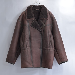 90s~ LEATHER WORKS ムートン コート 本革 レザージャケット ランチコート シアリングコート ヴィンテージ アウター 羊革 シープスキン ブラウン ビンテージ 古着 レディースXXL相当
