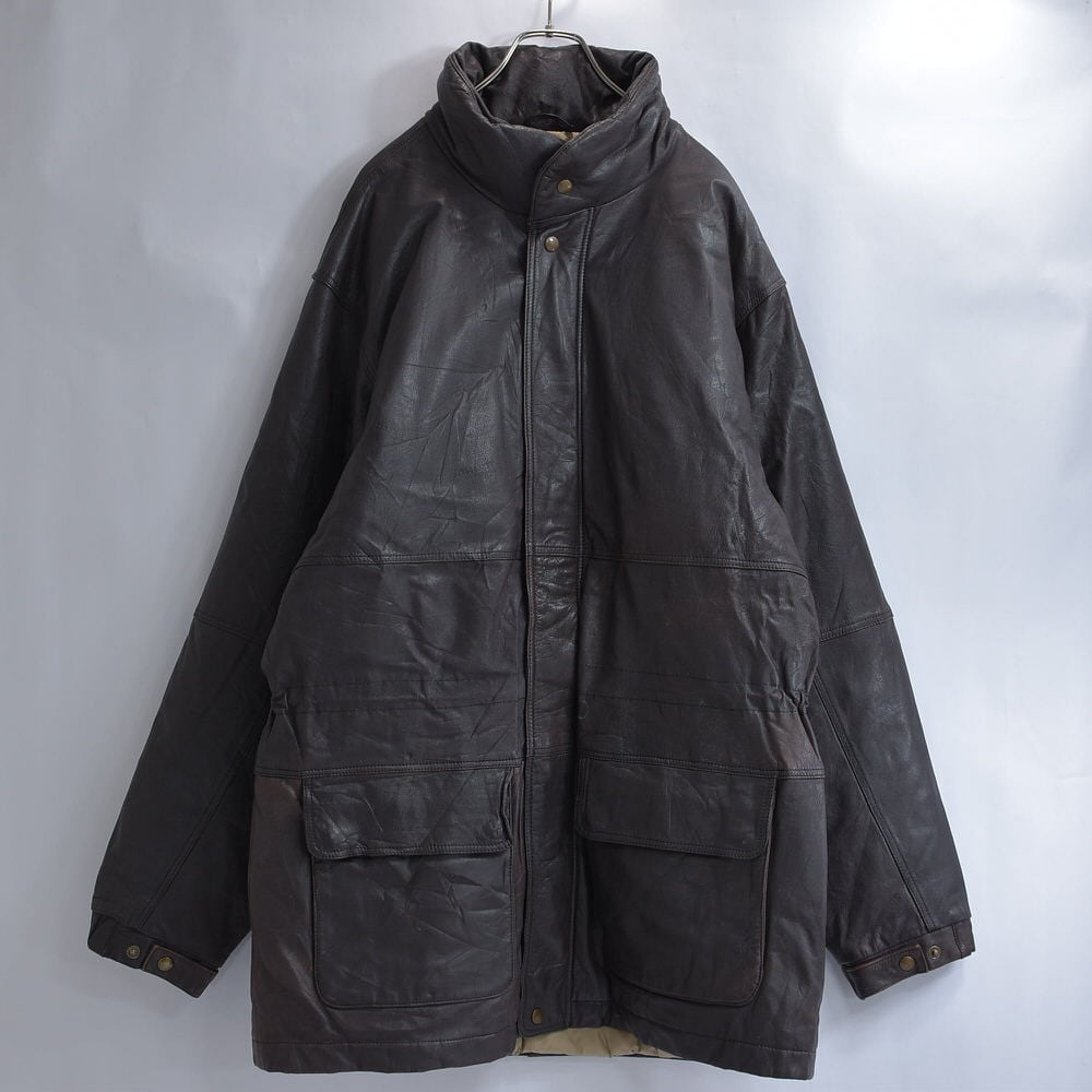 90s~ HAUTE ROUTE ハウテルート レザー ダウンジャケット 本革 ヴィンテージ アウター ダークブラウン ビンテージ 古着 メンズ XLサイズ