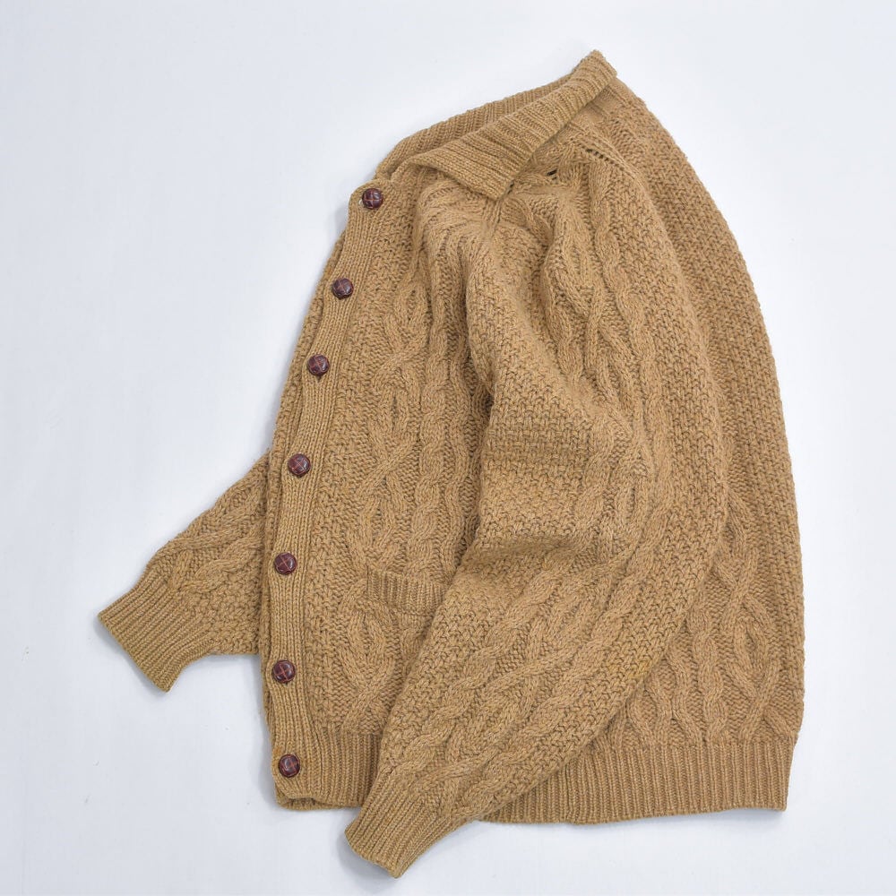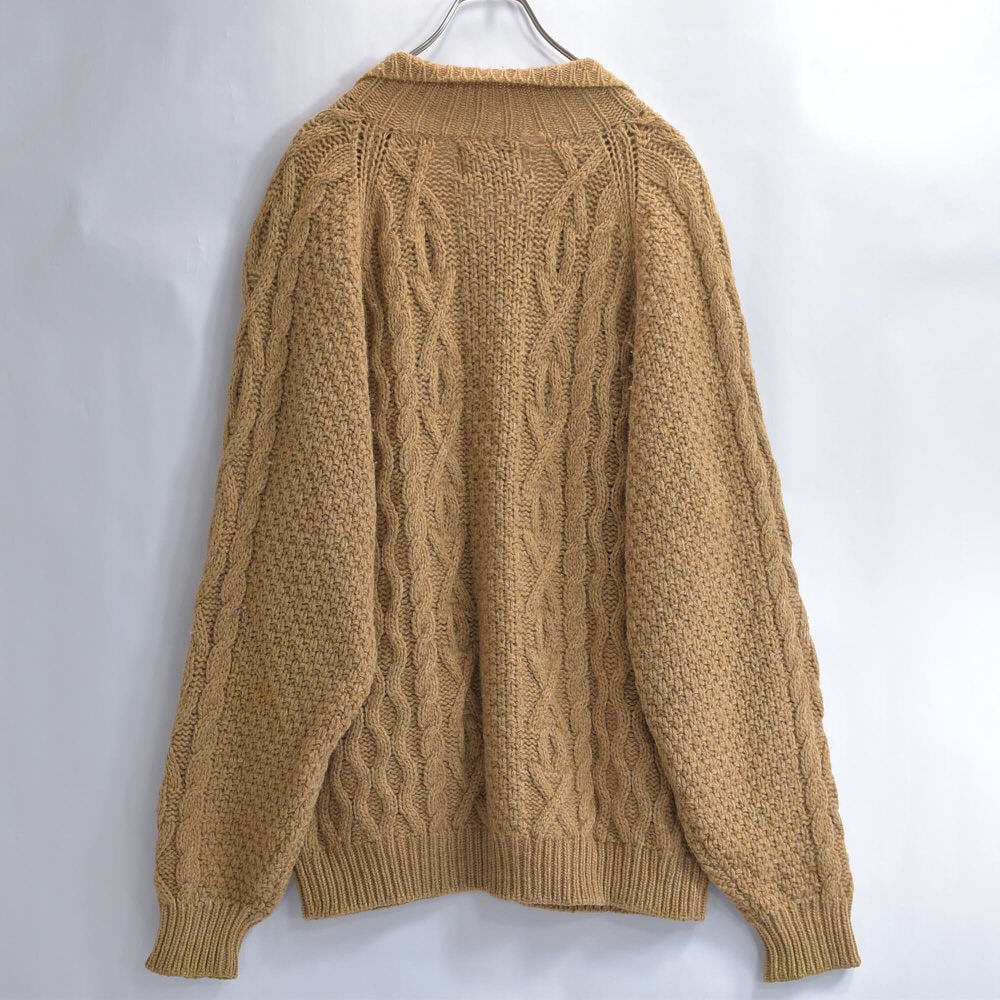 Woolrich ウールリッチ ケーブルニットカーディガン フィッシャーマン セーター アランニット ヴィンテージ ライトブラウン ビンテージ 古着 メンズXL相当
