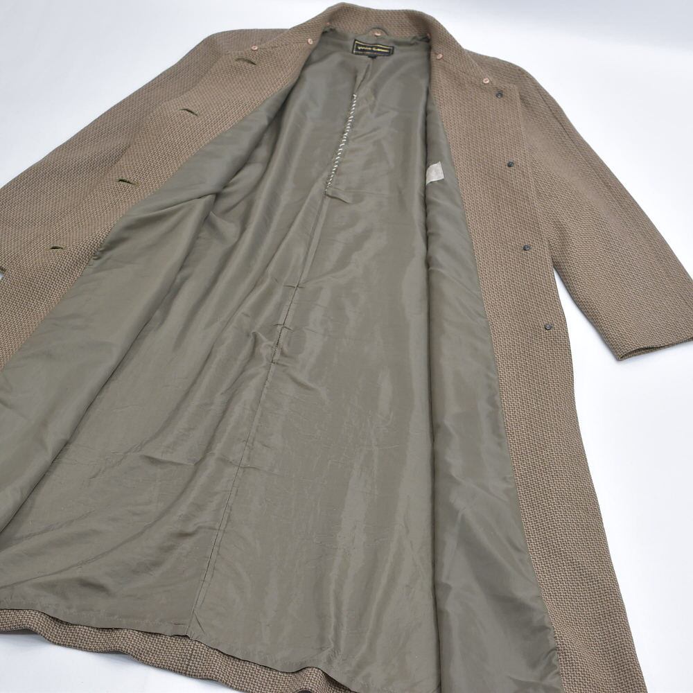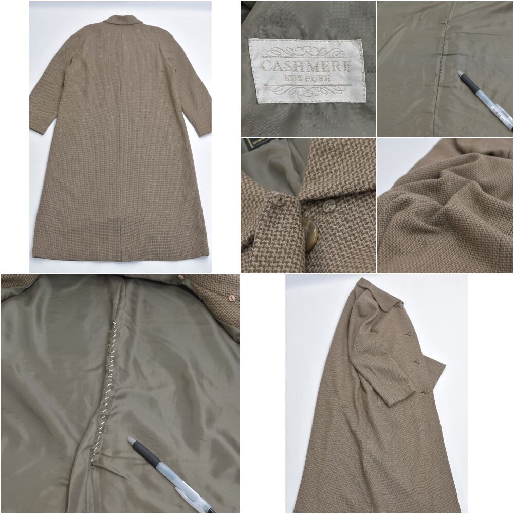 90s〜 mia carnaミアカーナ カシミア 千鳥格子 ステンカラーコート アウター ジャガード チェック 総柄ヴィンテージ ジャケット ベージュ ビンテージ 古着 レディース Mサイズ相当