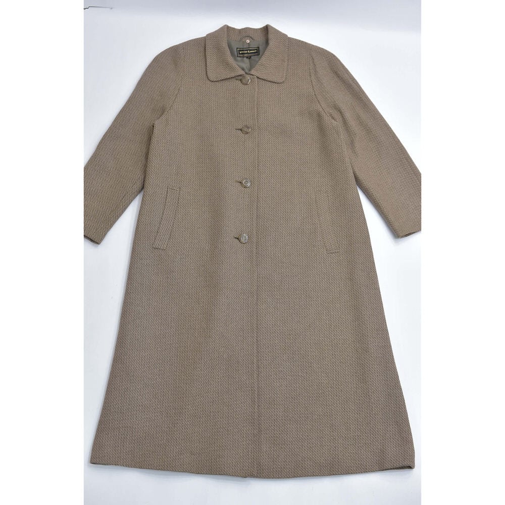90s~ mia carnaミアカーナ カシミア 千鳥格子 ステンカラーコート アウター ジャガード チェック 総柄ヴィンテージ ジャケット ベージュ ビンテージ 古着 レディース Mサイズ相当