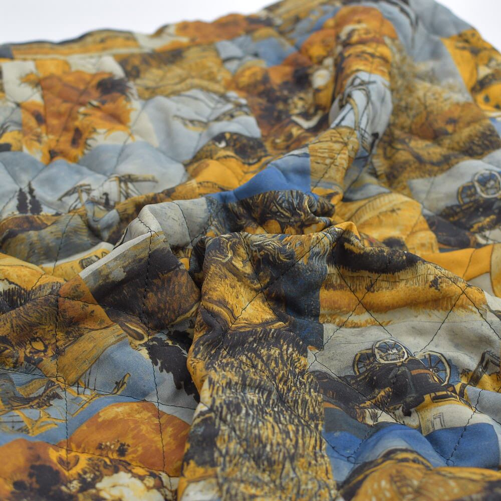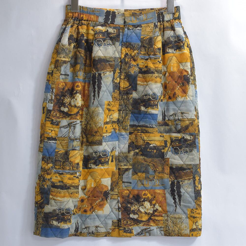 80〜90s plum-d'or プリュム・ドール フィンセント・ファン・ゴッホ アート柄 デザイン キルティングスカート ひまわり 絵画 総柄 ヴィンテージ ビンテージ 古着 レディースW63〜67cm