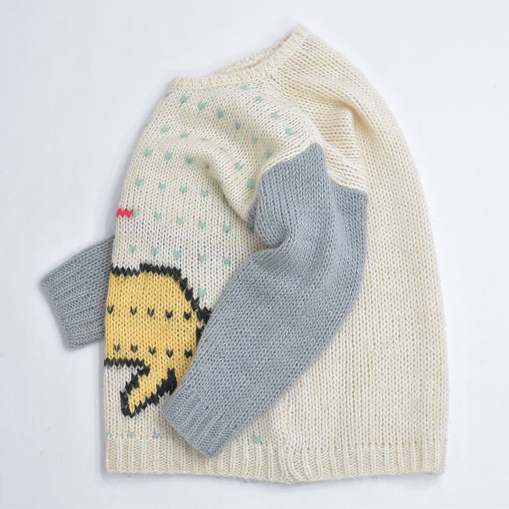 何かの動物さんと、何かの樹木さんを描いたどこかしらほっこりと和みを感じでしまうプルオーバーニット