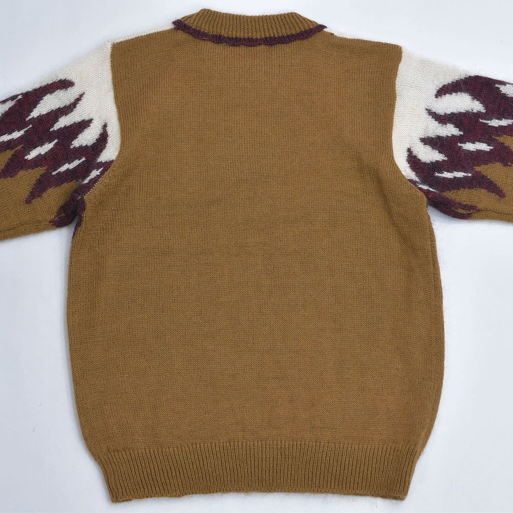 90s〜 Senstive Plant シェブロン&ボタニカル刺繍デザイン 求心柄 ロピセーター ヴィンテージ ニット ブラウン ノルディック風 ビンテージ 古着 レディースL相当