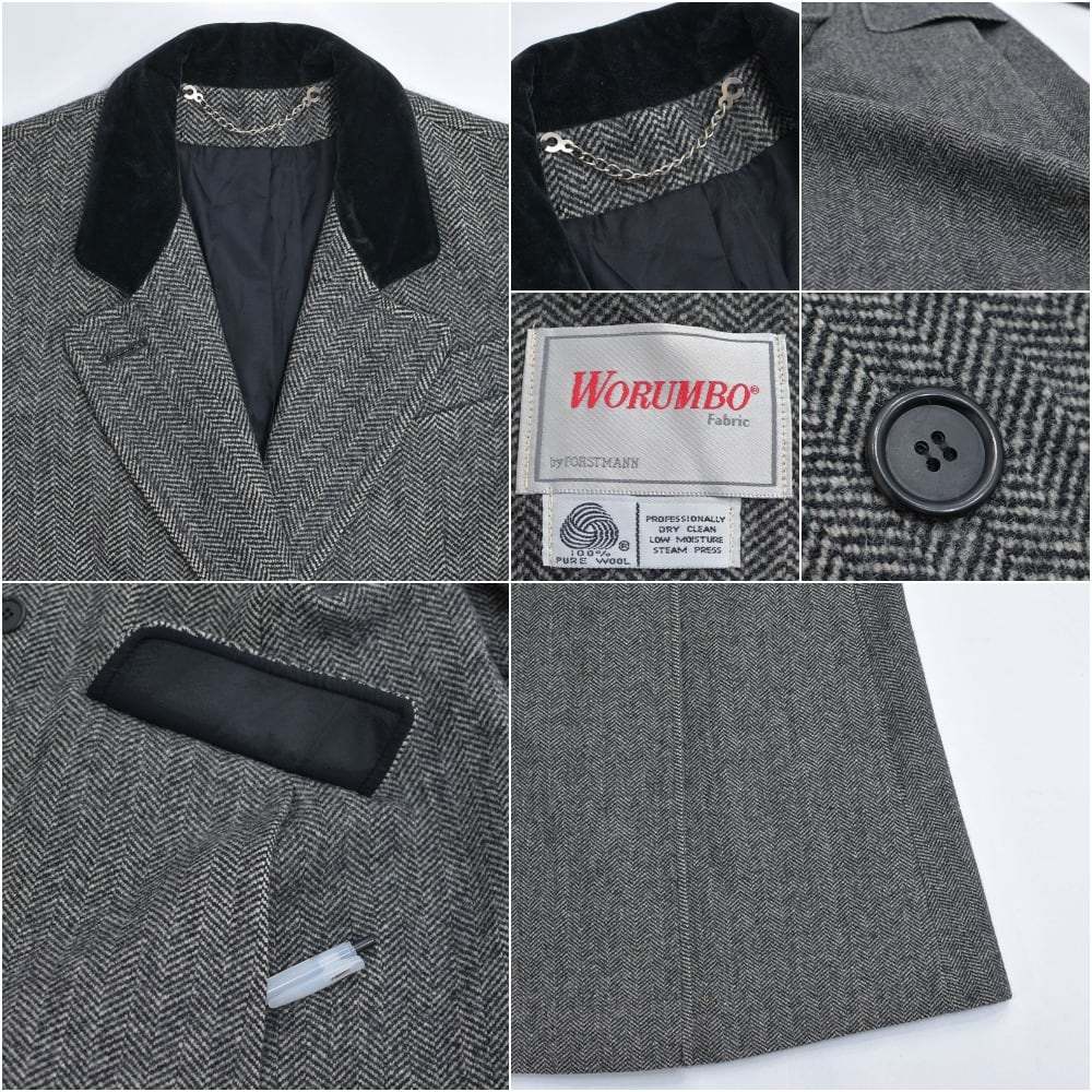 70〜80s アメリカ製 WORUMBOウール ダブル チェスターコート アウター ジャケット ヴィンテージ ヘリンボーン グレー ビンテージ USA 古着 レディース Lサイズ