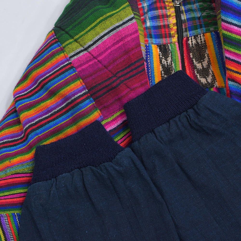 両袖と、身頃にパッチワークにて繋ぎ合わせたカラフルなインディオの伝統生地