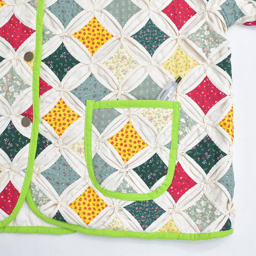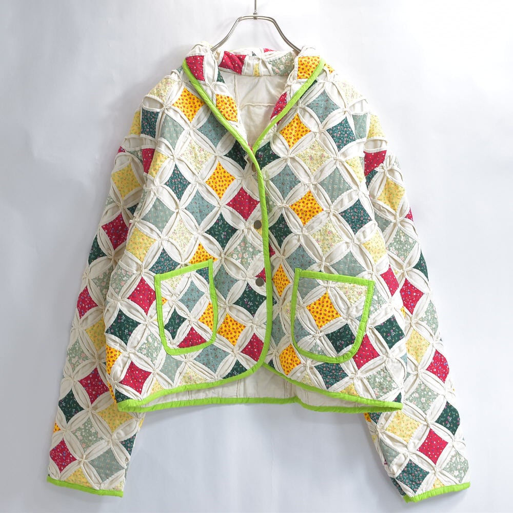 Remake ハンドメイド リメイク 立体デザイン 花柄 パッチワーク ジャケット アウター ショート丈 ジャンパー ブルゾン 3D アップサイクル レディースXL相当