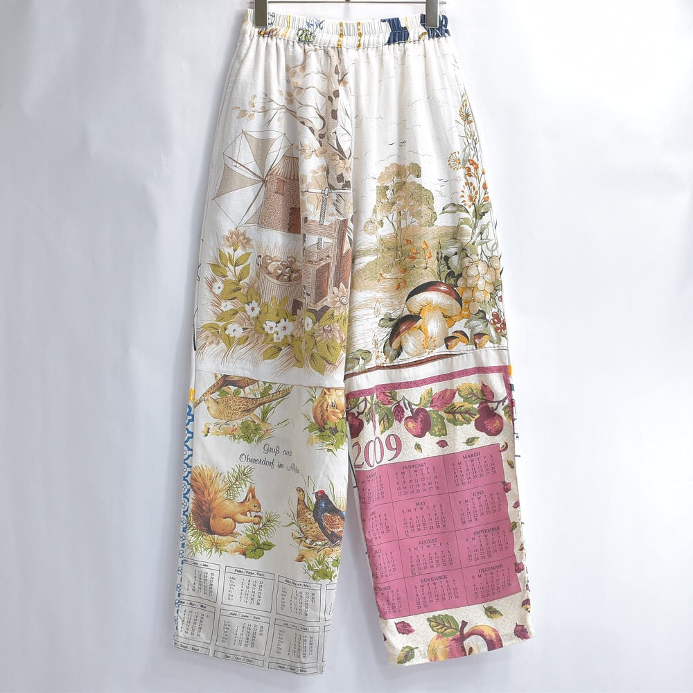Remakeリメイク ヴィンテージ テキスタイル パッチワーク デザイン 再構築 ルーズシルエットパンツ ツギハギ イージーパンツ 古着 裏地付き レディースW66~98cm